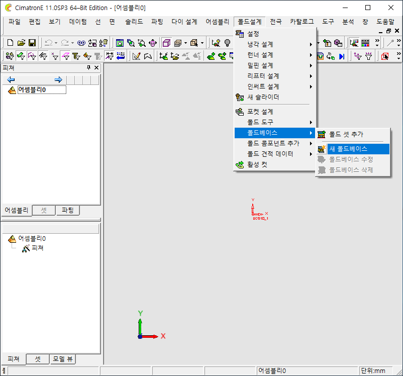 완료버튼을 누르면 자동으로 위와 같은 몰드베이스 세트를 만들어 줍니다. 다만 여기서 한가지 작업해야 할것이 있습니다.