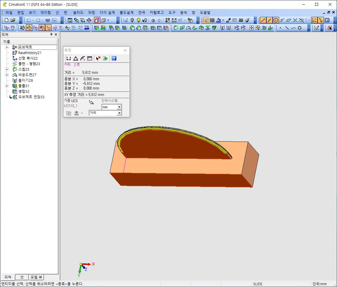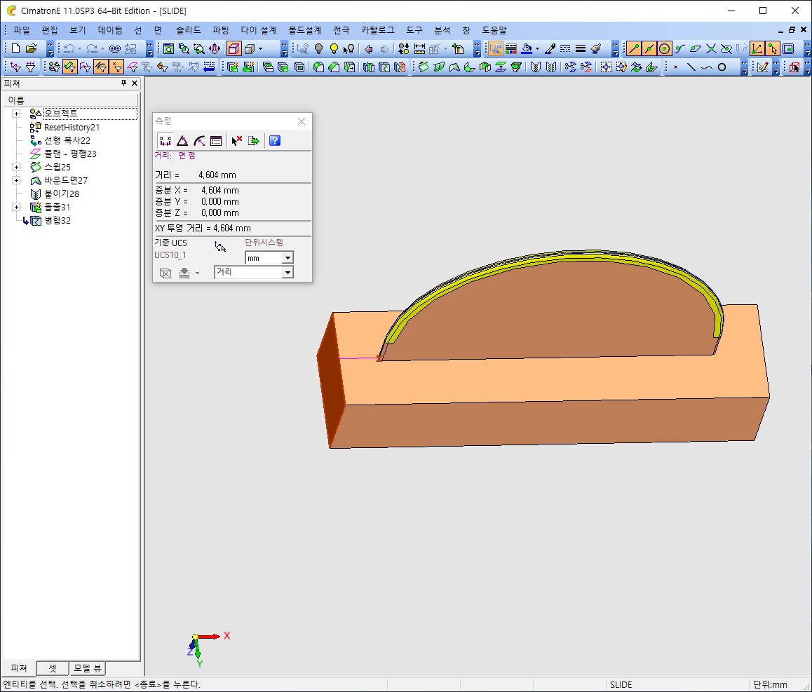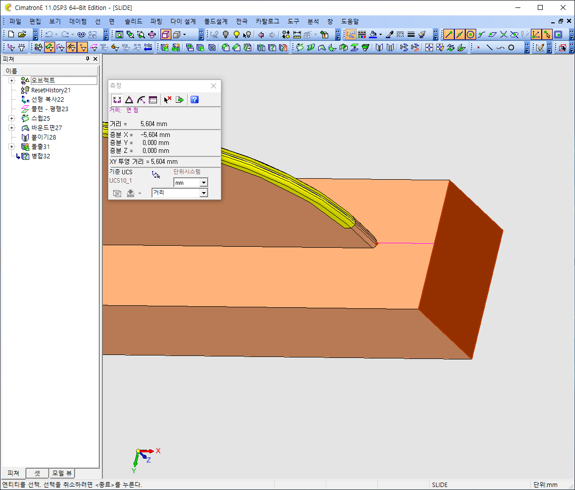 X2 값은 5.604 입니다. 약간 오버했네요. 다이를 1MM 오브젝트 연장해서 4.604 으로 만드세요.