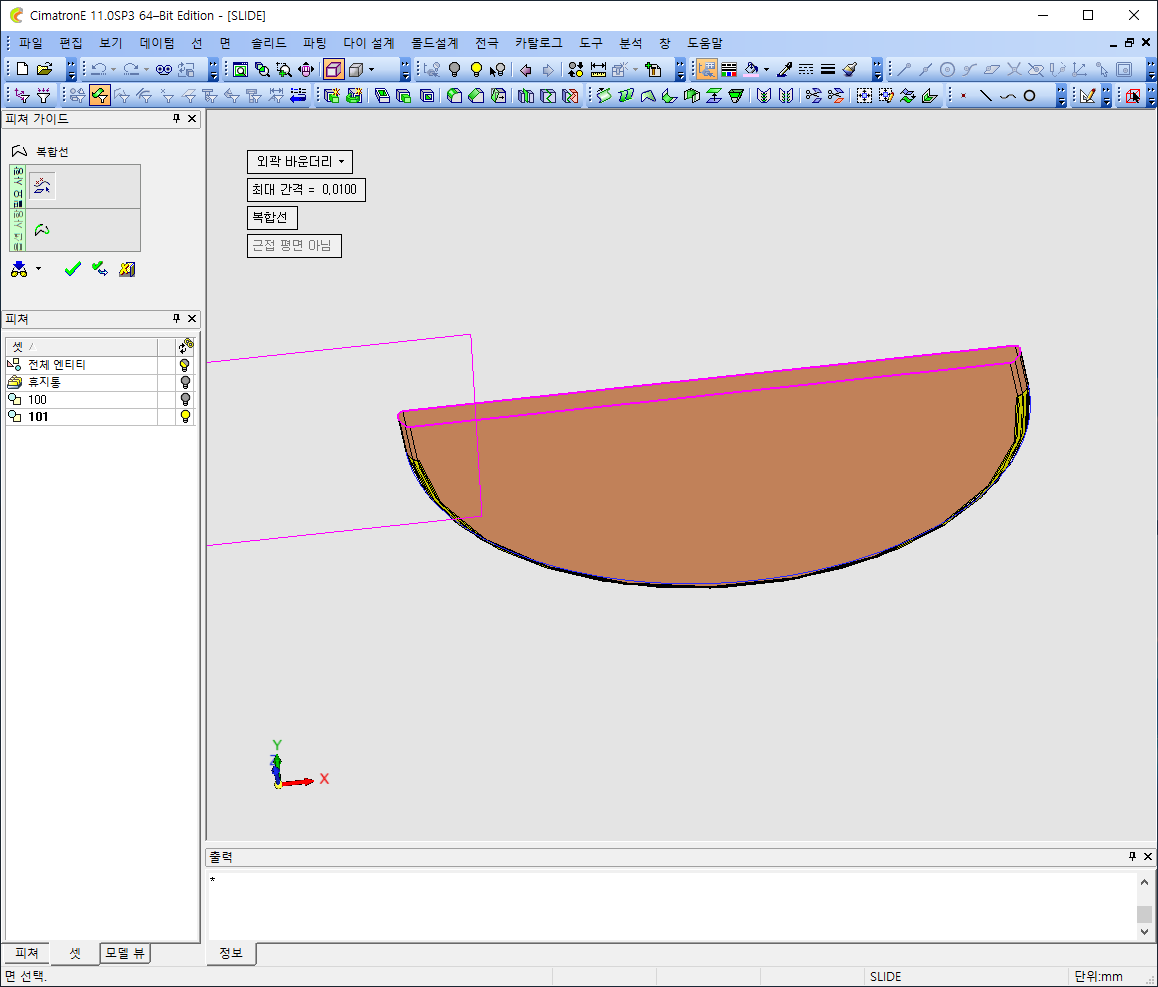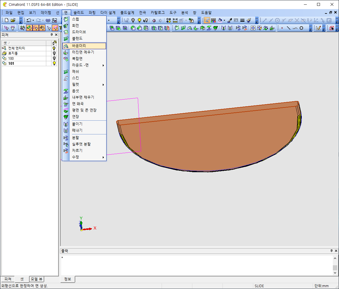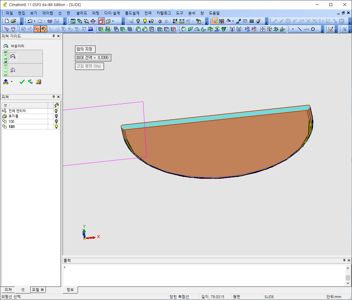 면 붙이기를 하면 이제 솔리드가 되었습니다. 솔리드가 되긴 했지만 면들중에 터진면이 있거나 중복면이 있다거나 하면 올바른 솔리드가 아니며 파일을 변환할때 제대로 변환되지가 않습니다. 확인작업을 해야 합니다.