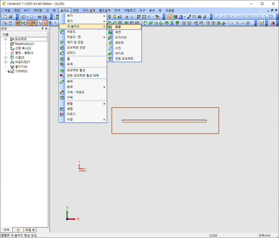 솔리드 >> 새솔리드 >> 돌출을 클릭해서 증분값을 10 을줍니다.