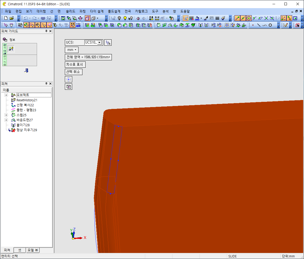 3) 다이의 네모퉁이는 UCS 기준으로 XYZ 값이 떨어지는 치수여야 합니다.