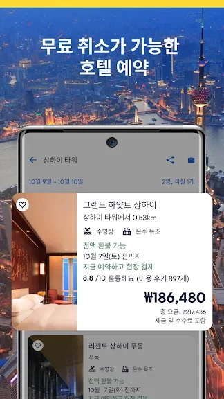 [고급 검색 필터] 트립닷컴에서 전세계 140만 개 이상의 호텔을 검색할 수 있습니다. 저렴한 아파트, 고급스러운 5성급 호텔, 아늑한 홈스테이, 다양한 레크리에이션 시설을 갖춘 리조트 등 원하는 숙소를 쉽게 찾을 수 있습니다.