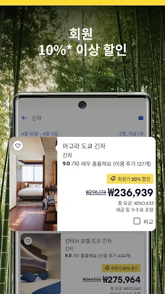 - 회원가로 수천 개 호텔에서 10% 이상 할인