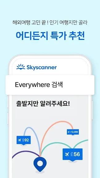 어디로 떠날지 고민이라면 Everywhere 검색부터 해보세요. 검색 창에서 ‘Everywhere’를 누르면 전 세계 모든 여행지로 가는 최저가 항공권들을 둘러볼 수 있어, 해외여행이나 국내 여행을 계획할 때 훌륭한 길잡이가 됩니다.