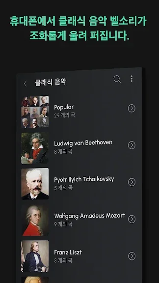 이제 벨소리 Android™ 전용 앱이 독특한 벨소리 경험을 위해 mp3 음악 플레이어 기능을 제공합니다! MP3 플레이어 기능은 클래식 음악 벨소리와 새 소리 카테고리만을 위한 최신 기능입니다. Mp3 음악 플레이어에서 가장 좋아하는 클래식 음악 작곡가의 음악을 즐겨보세요! 동일한 기능으로 다양한 새소리를 들으며 휴식을 취할수도 있습니다.