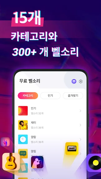 🎼 카테고리 : 최고 인기, 자연, 클래식 음악, 빈티지, 비즈니스, 전자 음악, 록, 힙합, 크리스마스, 재밌는 소리, 알림, 알람 그리고 훨씬 더!