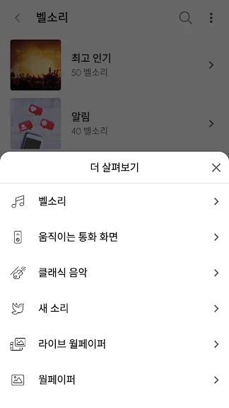 - Android에서 사용 가능한 10개 이상의 인기 벨소리 카테고리: 가장 인기, 알림, 클래식, 알람, 연락처, 재미, 동물, 록, 힙합, 팝 등