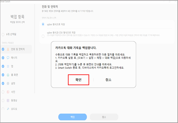4. 삼성 스마트 스위치 PC 버전 으로 데이터 백업하기