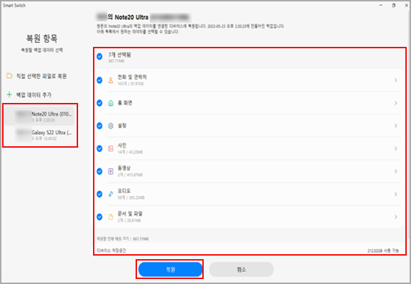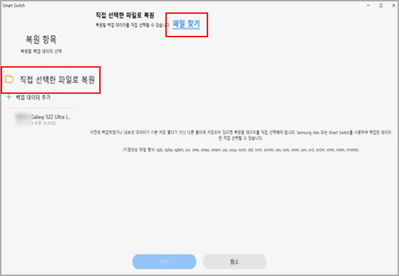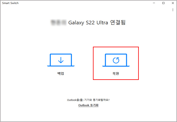 5. 삼성 스마트 스위치 PC 버전 으로 데이터 복원하기