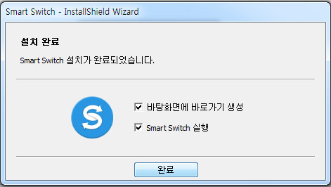 설치가 완료된 후 바로가기 생성, 스마트 스위치 실행을 선택할 수 있습니다.