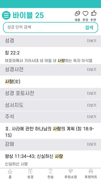 바이블25 성경 찬송 - 성경사전, 다번역 개역개정 어플을 만들어 주신 개발자님 감사합니다~
