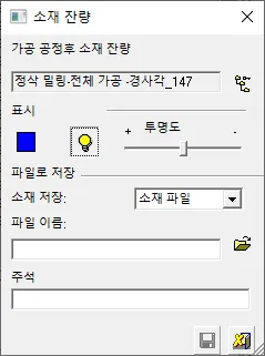 색상을 잘보이도록 노란색으로 변경하고 투명도를 최대로 하면 남은 소재가 육안으로 잘 보이게 됩니다. 이 상태에서 소재를 저장할수가 있습니다.