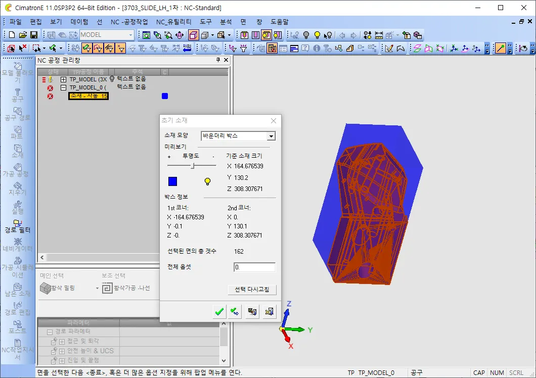 보통 처음 NC 파일을 만들면 소재부터 설정하죠