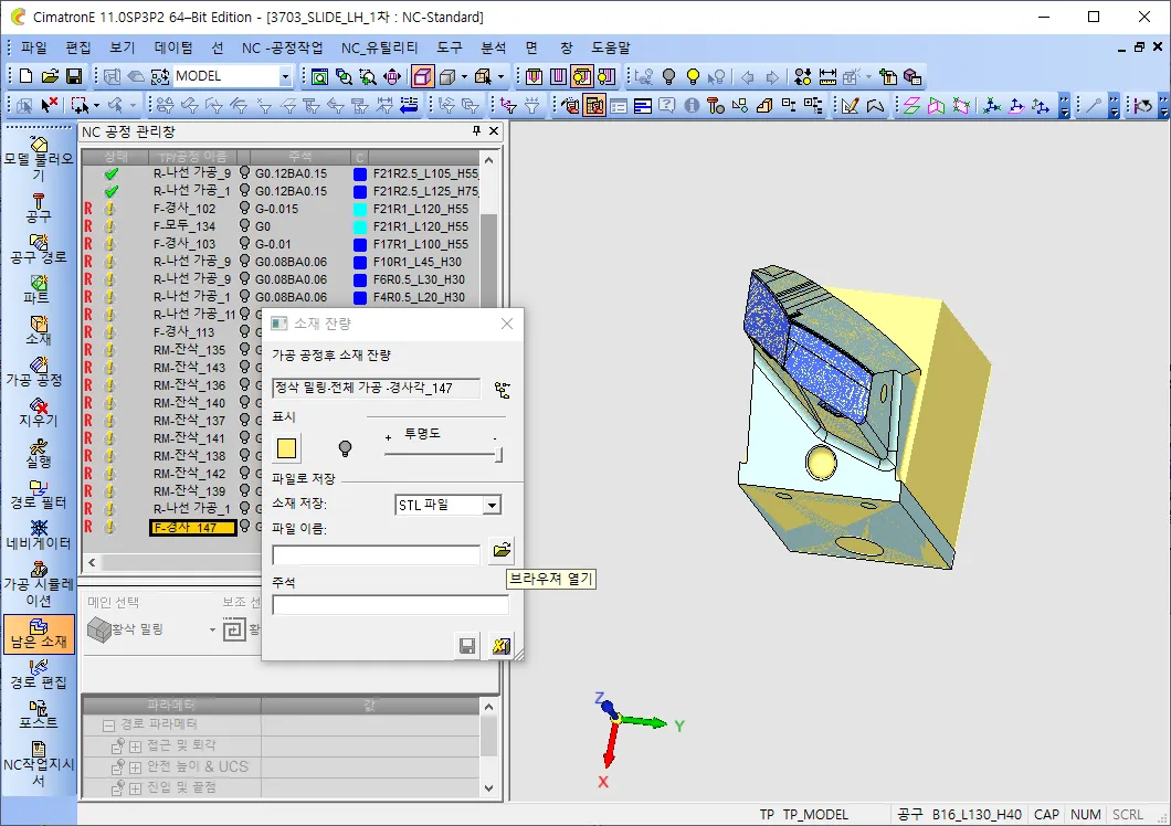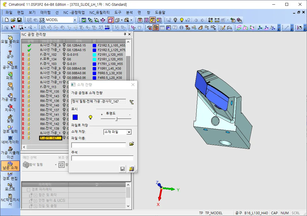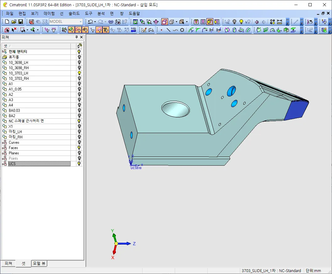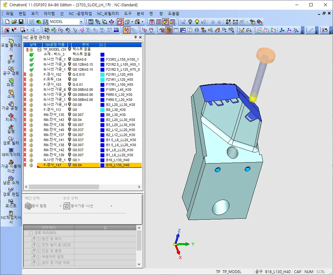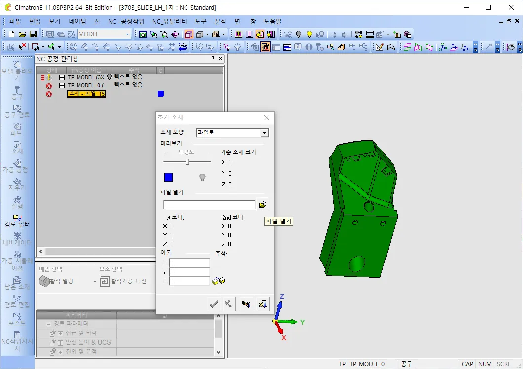 NC 데이타를 하나 가져옵니다. 저는 슬라이드를 하나 가져왔습니다.