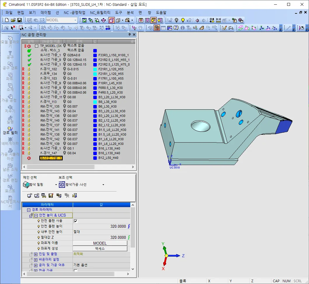 가공방식은 아무거나 해도 됩니다. 다만 중요한것은 좌표계 이름이 "MODEL" 이라고 되어 있는게 보입니다.