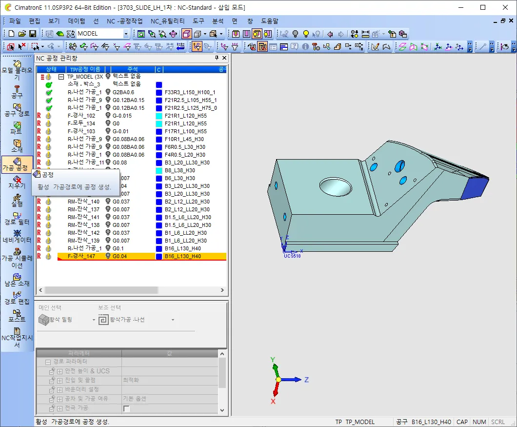 NC 데이타를 하나 가져옵니다. 저는 슬라이드를 하나 가져왔습니다.