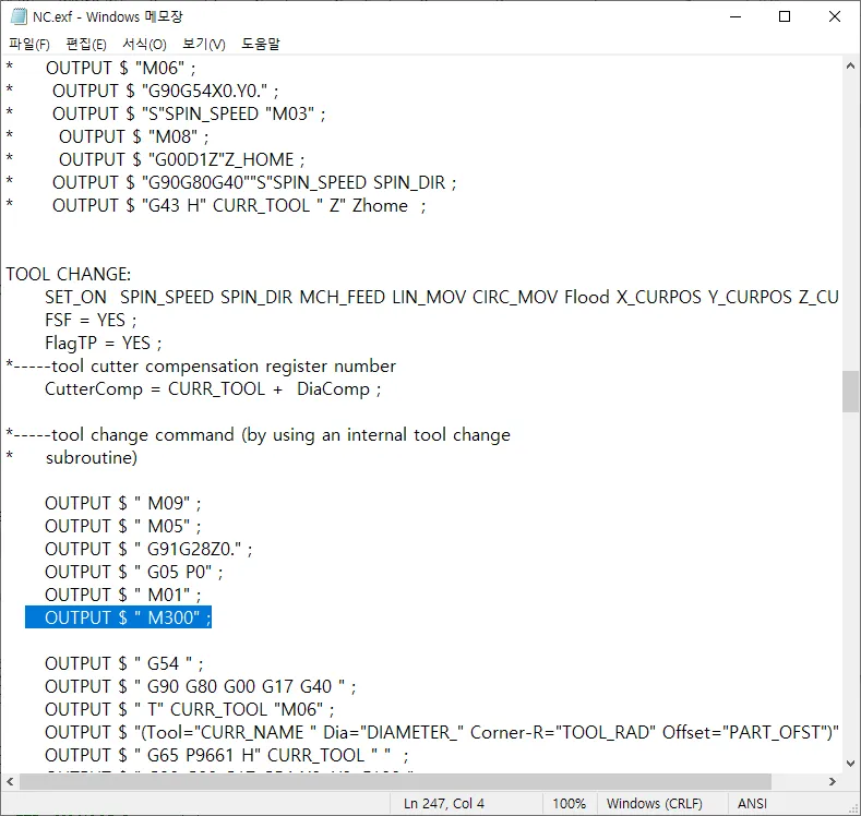 실제로 포스트 한겁니다. M300 명령어가 잘들어가 있는것을 볼수가 있습니다. 검증까지 해야 완벽하겠죠~
