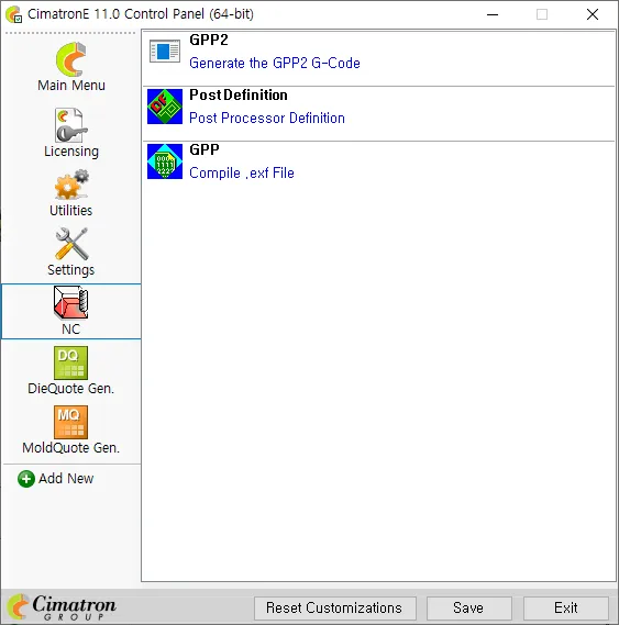 시마트론 컨트롤 패널을 엽니다. 그다음 왼쪽에 NC 를 클릭한다음 오른쪽에 GPP 를 클릭합니다.
