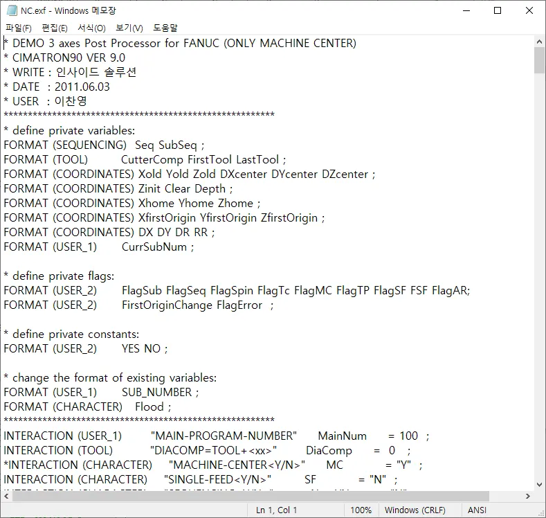 보통 워프좌표계는 G54 G55 G56 G57 G58 G59 이렇게 6개를 사용할수가 있습니다. 하지만 포스트 는 G54 만 하도록 되어있죠. 저는 포스트 한뒤 메모장으로 G54 를 찾아서 G55 로 일괄변경해서 사용하곤했는데 이것도 너무 귀찮아졌습니다. 그냥 포스트 할때 선택해서 포스트하면 알아서 G55든 G59 든 나왔으면 좋겠다는 생각이 들어서 카페같은곳에 질문도하고 검색해서 방법을 찾았습니다. 아마 저와 같은 고민을 하고 계신분들이 상당히 많을걸로 예상합니다. 정말 고급 지식이니 꼭 정독하셔서 자기걸로 만드시길 바랍니다. 자 그럼 시마트론 POST 포스트 수정 EXF 편집방법 시작합니다.