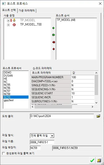 1. G54 ~G59 포스트 완성된 결과물
